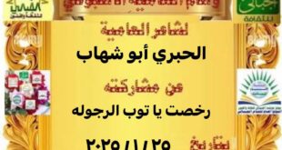فاز بوسام العامية : الأديب الحبري أبو شهاب وذلك عن مشاركته / رخصت ياتوب الرجولة