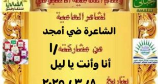 _ فاز بوسام العامية : الشاعرة ضي أمجد وذلك عن مشاركتها / أنا وأنت يا ليل