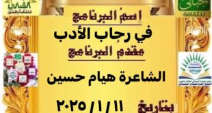 أكمل القراءة »برنامج فى رحاب الادب تقديم الشاعرة/هيام حسين