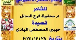 أكمل القراءة »** فاز بوسام الشعر : الشاعر د. محفوظ فرج المدلل وذلك عن قصيدته