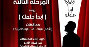 الثقافة تستكمل المرحلة الثالثة من مشروع “ابدأ حلمك” لإعداد الممثل الشامل بالمحافظات الاستعداد لتخرج دفعة شمال سيناء واستمرار تلقي المشاركات بقنا وبدء المشروع بالإسماعيلية ضمن برامج وزارة الثقافة لاكتشاف ورعاية الموهوبين من أبناء المحافظات، وبرعاية الدكتور أحمد فؤاد هنو، وزير الثقافة، تستكمل الهيئة العامة لقصور الثقافة، المرحلة الثالثة من مشروع …